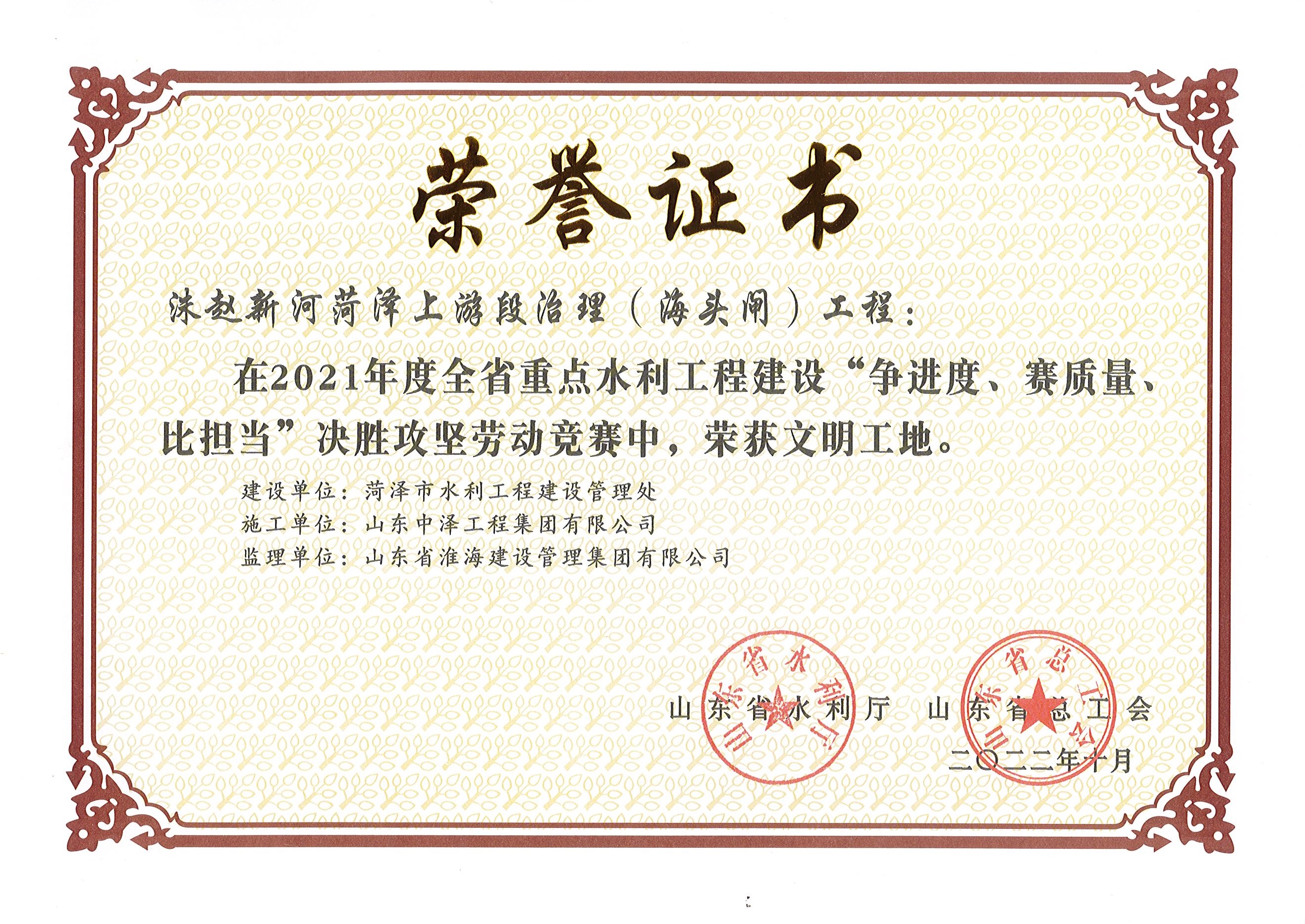 優(yōu)質(zhì)工程獎--太行堤河治理單縣下游段