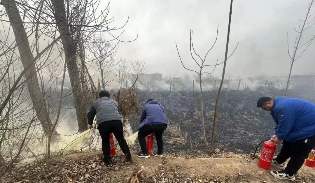在大家的共同努力下,經(jīng)過一番緊張而有序的滅火行動后,濃煙變小,火勢得到控制,消防隊(duì)的消防官兵也及時(shí)趕到,歷時(shí)2個(gè)小時(shí),終于將這場火情撲滅,因發(fā)現(xiàn)及時(shí),撲救迅速,保住了附近樹林的樹苗,火災(zāi)沒有造成重大的財(cái)產(chǎn)損失。